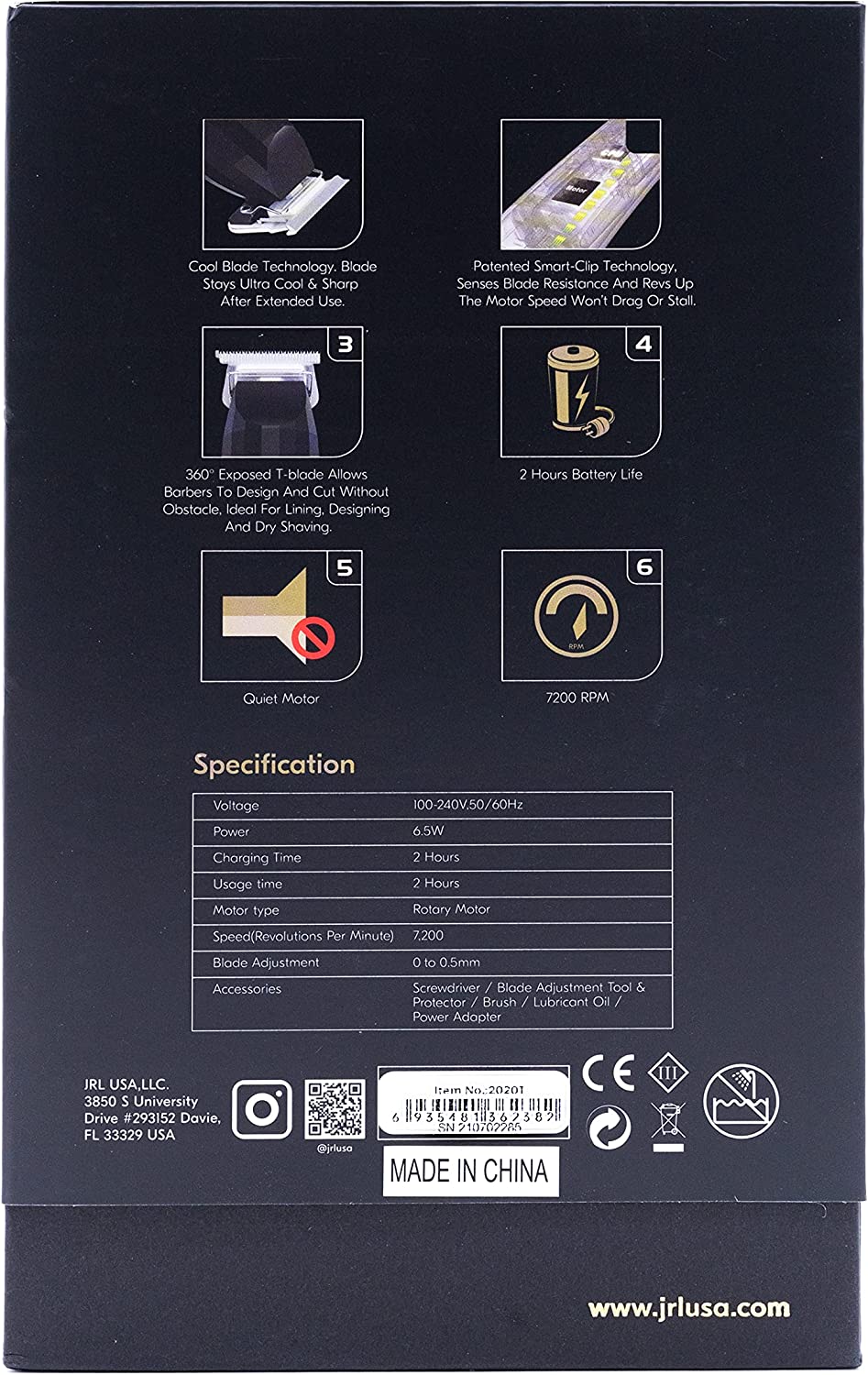 Accessories: 1 Screwdriver, 1 Brush, 1 Lubricant Oil, 1 Blade Protector, 10 Comb Guards (½#, 1#, 1-1/2#, 2#, 3#, 4#, 5#, 6#, 7#, 8#), 1 US Plug.
