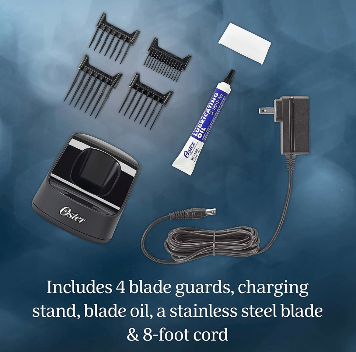 • Accessories: Charging Stand, 4 Guide Combs, Blade Oil,